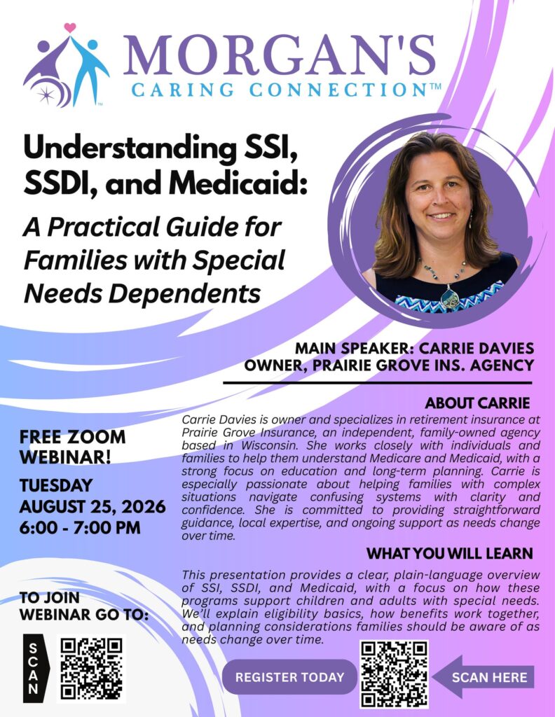 The Webinar Education Program is an educational initiative led by Morgan’s Caring Connection, designed to equip families, professionals, and community partners with practical knowledge around long-term planning for individuals with disabilities.
